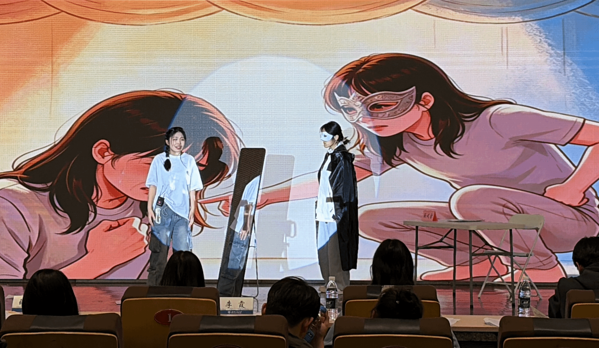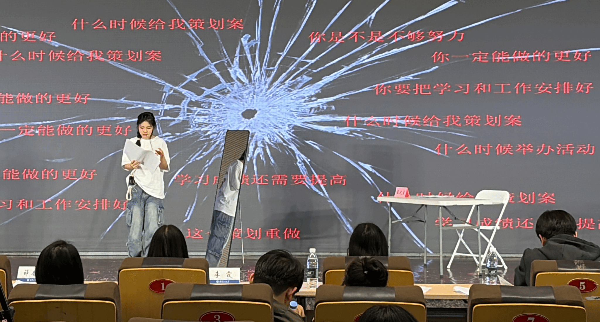 剧目通过“外在压力裹挟”“内心自我对峙”“亲情和解治愈”“建立自我边界”四个核心篇章,将大学生常见的条件性自尊、情绪内耗、边界感缺失等心理问题具象化,以沉浸式的舞台表演,传递出“接纳真实、学会拒绝、善待自我”的正向心理理念。从剧本创作、舞台编排到角色演绎,全体主创团队倾注大量心血:游雨晨担任导演,全程把控剧目整体呈现与舞台节奏;吴成禹潜心创作剧本,精准捕捉大学生心理痛点,打磨贴合现实的剧情内容;参演同学李靖莹、刘梦萍、钟欣宇、付金洋、刘宝伊利用课余时间反复钻研角色心理、打磨台词细节、排练舞台配合,精准诠释出不同角色的性格特质与情感内核,将青年学生的心理困惑与成长蜕变演绎得淋漓尽致。在指导老师杨依婷的悉心指导下,剧目不断优化细节、提升情感张力,最终以饱满的舞台效果获得评委与观众的一致认可。