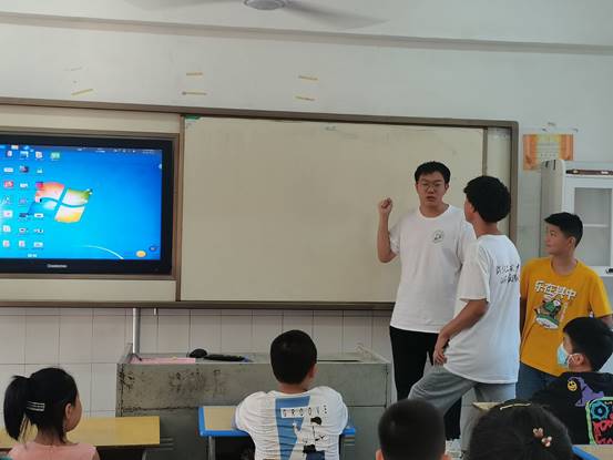 “七彩筑梦”暑期支教团将党史宣讲贯穿杨店镇中心小学暑期支教活动的全过程。本次党史教育课程由支教团成员于智霖授课。