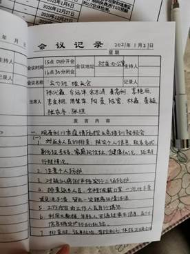 20级环境工程二班阳曼在寒假期间也加入了自己家乡利川市南坪乡大河村的志愿者服务队。阳曼所在地区的村委会召开了疫情防控工作会议,会议要求各村、各成员单位做好防范,各村成立防疫领导小组,启动联防联控制度。会议结束后阳曼所在的志愿队迅速投入了工作,对外地返乡人员进行摸底排查,并做好疫情监测、管控等工作。