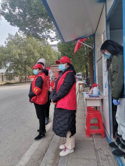 图1.志愿者们在卡点等候来往车辆