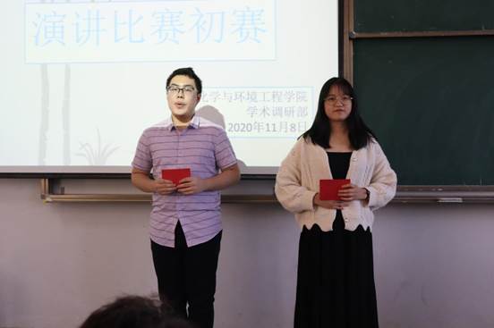 此次演讲比赛初赛分为两场,由吕世娜和万唐奇主持,主持人宣布比赛正式开始后,选手们依次登台展示,配合着精心制作的多媒体课件,将他们的风格发挥得淋漓尽致,每位参赛选手都精神饱满、感情充沛、表达流畅,他们富有感染力的演讲打动了评委老师和在场观众,将现场气氛推向一个又一个高潮。