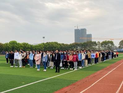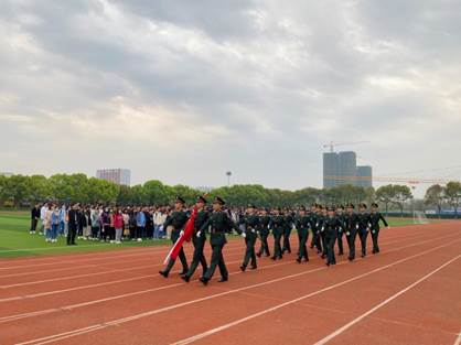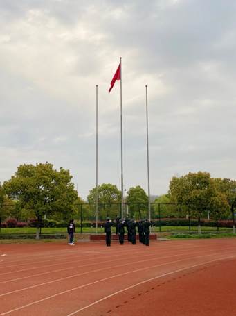 在流芳校区新运动场举办升旗仪式。党委副书记徐凯、全体辅导员、全院学生参加本次升旗仪式。