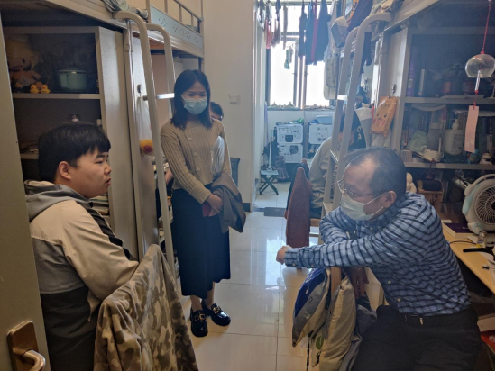在检查过程中,学院领导还对学生学习情况做了简单了解,强调要克服不利因素,紧跟课堂学习进度,及时调整心态,同时叮嘱同学们,注意防寒保暖,理解和配合疫情防控工作,也希望同学们在营造一个干净整洁、积极向上的宿舍环境的同时,能珍惜大学时光,实现全面发展。
