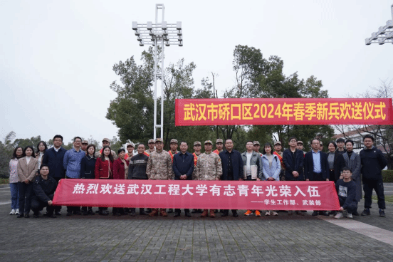 本网讯(通讯员 李俊闹)3月15日下午,校党委副书记李志旭带队前往湖北省军区综合训练基地参加硚口区2024年春季新兵欢送仪式。党委学工部、武装部部长吕容涛,副部长徐凯,各学院副书记、辅导员,学生家长参加仪式。