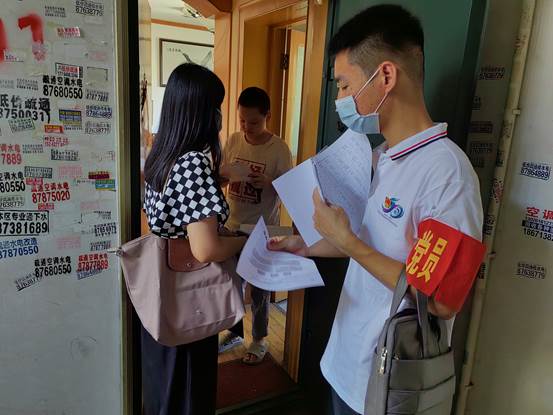 在社区的统一安排下,为切实预防电信网络诈骗案件的发生,提高居民的防诈意识,教师党员两两分组,分头前往各个居民楼栋开展防诈骗入户宣传工作。