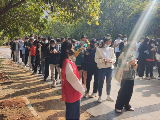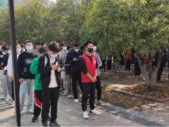 上午10:30,学生党员志愿服务队提前到达聆听广场,为即将开始的核酸检测工作做好准备。核酸检测开始后,志愿者们分工明确,各司其职,积极维护核酸检测秩序,高效快速分散人流,与医护人员并肩作战。两个半小时的服务时间,志愿者们一直坚守岗位到最后一刻,为核酸检测工作的顺利完成付出了辛勤汗水。
