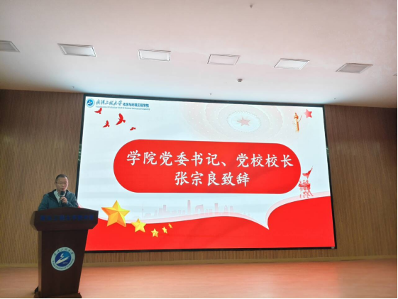 典礼在庄严的国歌声中拉开帷幕。张宗良发表讲话并对学员提出三点要求:第一,虔诚求学,内化于心;提醒学员们要认真对待此次党校学习,将集中培训与个人自学有机结合起来,养成良好地学习习惯。第二,端正动机,外化于行;要坚持学思用贯通,知信行统一。要严格遵守党的纪律和规矩,做到言行一致、表里如一。第三,示范引领,共筑辉煌;要用党的科学理论指导学习工作,用党的光辉历史激励前行道路,用党员初心使命时刻对照自身,在班级、学院、学校、社会上都要积极发挥先锋模范带头作用,牢记入党初心,并为之不懈奋斗。