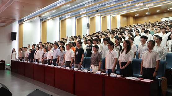 随着新生代表薛睿颖同学领誓,铿锵有力的誓言传达出新生们勇于担当、积极进取的决心,同学们必将铭记这份誓言,发奋图强,勇于挑战,创造辉煌的明天,为母校添砖加瓦、为学院增光添彩,成就精彩的大学生活。