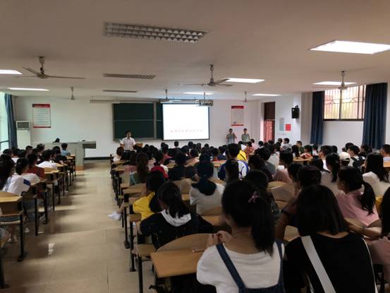 专业介绍暨与新生及家长面对面交流会分别在L1208和L1308举行。学院党委书记谢春晖、院长陈金毅、党委副书记苏纯华、副院长王营茹、余军霞出席。2018级全体新生和部分家长参加交流会。