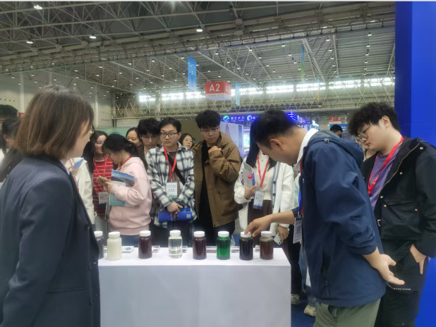 图6同学们在水处理药剂及人工智能展台前认真学习和交流