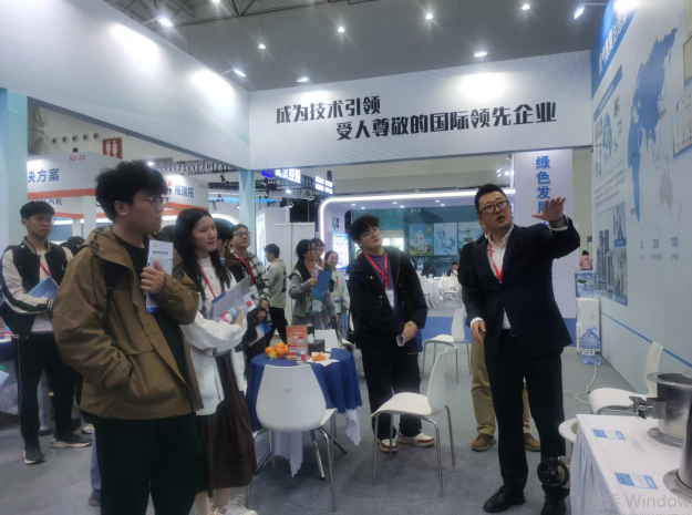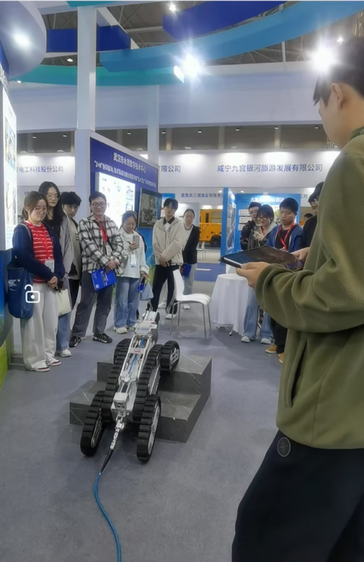 论坛结束,师生来到环保产业博览会进行学习和交流,在中建三局绿色产业投资有限公司展台前,同学们对该公司的智慧水务管理平台及获奖工程非常感兴趣,深入了解公司“水务环保、静脉产业、能碳”三大核心赛道,以及打造全国绿色产业发展主力军的发展历程;在武汉市水务数字技术中心展台,大家聚焦新技术与水务工作融合研发及推广应用,了解各种智能设备和巡检机器人(如河湖智能防控机器狗、“湖泊卫士”智能监测系统、水面垃圾自动收集器、供水嗅探卫士等)在环保领域的应用场景,惊叹我省新一代信息技术的发展已如此迅猛;同学们结合专业知识,就污水处理药剂、活性炭产品、膜产品、消毒设施、各种管道阀门、恶臭治理等新产品、新技术与参展单位进行深入交流和学习,感觉受益匪浅。