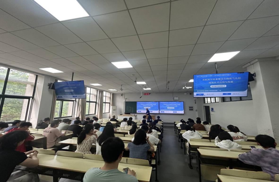 (通讯员 张慧)4月17日下午,由学院主办的“有机质甲烷重整及生物质气化制绿氢技术应用与发展”主题讲座在L4103智慧教室成功举行。作为“工大学术周”的重要活动,本次讲座特邀行业专家何小平。何小平担任武昌地区餐厨废弃物处置一厂、二厂厂长,并在武汉天基生态能源科技有限公司、武汉碳环生态有限公司担任常务副总,同时兼任武汉天基环境工程有限公司总经理。讲座由学院张慧副教授主持。
