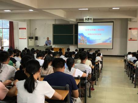 邀请同心派出所徐乐安警官为2018级全体新生开展“校园安全教育第一