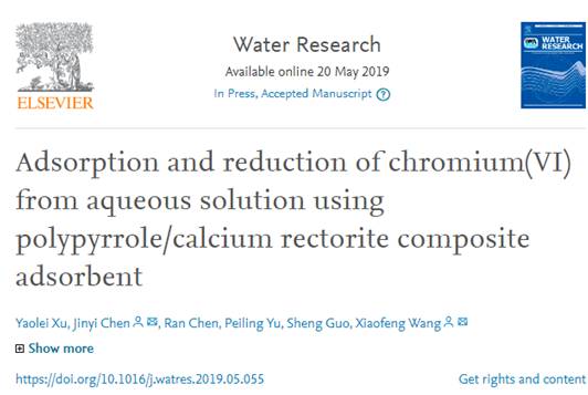 陈金毅教授课题组的论文“Adsorption and reduction of chromium(VI) from aqueoussolution using polypyrrole/calcium rectorite composite adsorbent”。文章采用钙基累托石原矿制备了聚吡咯/钙基累托石复合材料(PPy/Ca-REC),并研究了此类材料对水体中Cr(VI)的吸附-还原机理,为粘土基材料在高铬废水处理中的应用提供了重要参考依据。