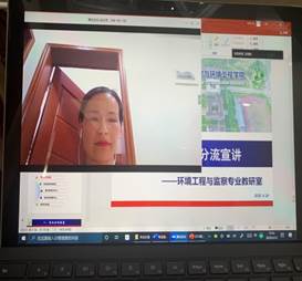 环境工程专业分流宣讲会由教研室主任关洪亮主持。张华丽老师开篇介绍了环境工程专业的方向设置、专业条件和特色,围绕学生普遍关心的“我们将要学什么,我们将来做什么”等做了详细的讲解,并给出依据专业优势选择专业方向的建议。接下来,杨光忠教授分别从环境监察方向的培养目标、主干课程、师资力量、就业去向、专业特色及成果以及就业前景几大方面为学生进行讲解,使同学们进一步明晰了环境监察方向的学习内容和就业去向。王营茹副院长就上半场会议进行总结,她建议学生清楚认识自己适合的方向,做出正确选择。随后详细回答了学生线上提出的有关方向分流方面的问题。