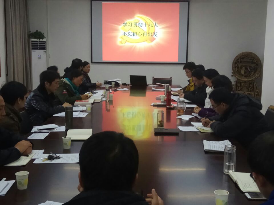 党委理论学习中心组组织专题学习交流会,深入学习领会党的十九大精神。学院党委委员和班子成员、各教研室、研究所负责人、教工党支部书记和教师代表共同参加了学习。