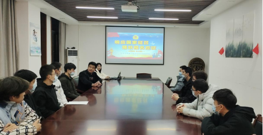 在化工大楼704会议室开展大学生征兵宣传讲座。参加讲座的有学院党委副书记许守飞、2019级辅导员李俊闹、退伍学生代表、国旗班学生代表、有意向参军的学生。