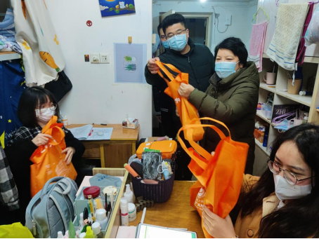 考研学生寝室进行慰问,为同学们加油鼓劲,并送上精心准备的“考研加油包”。