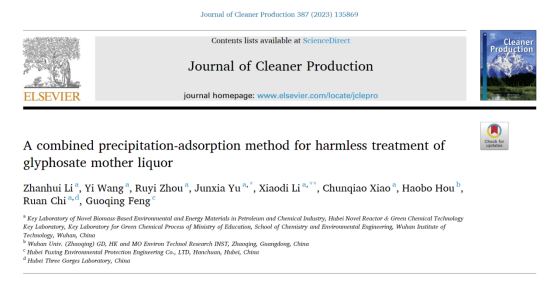 本网讯(通讯员李小娣贾丰成)近日,化学与环境工程学院应用化学专业2020级本科生李战辉以第一作者身份在国际知名期刊《Journal of Cleaner Production》(中科院一区Top期刊,影响因子11.072)发表了题为《A combined precipitation-adsorption method for harmless treatment of glyphosate mother liquor》的学术论文。余军霞教授和青年博士李小娣为论文通讯作者,草榴社区