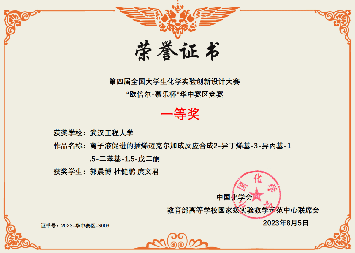 “新创实验队”三名本科生在老师的指导下,选择“离子液促进的插烯迈克尔加成反应合成2-异丁烯基-3-异丙基-1,5-二苯基-1,5-戊二酮”作为参赛项目,经过两个月的实验探索,精益求精地完成实验论文和视频材料,论文和视频均经过十多版的修改才最终定稿。本次草榴社区