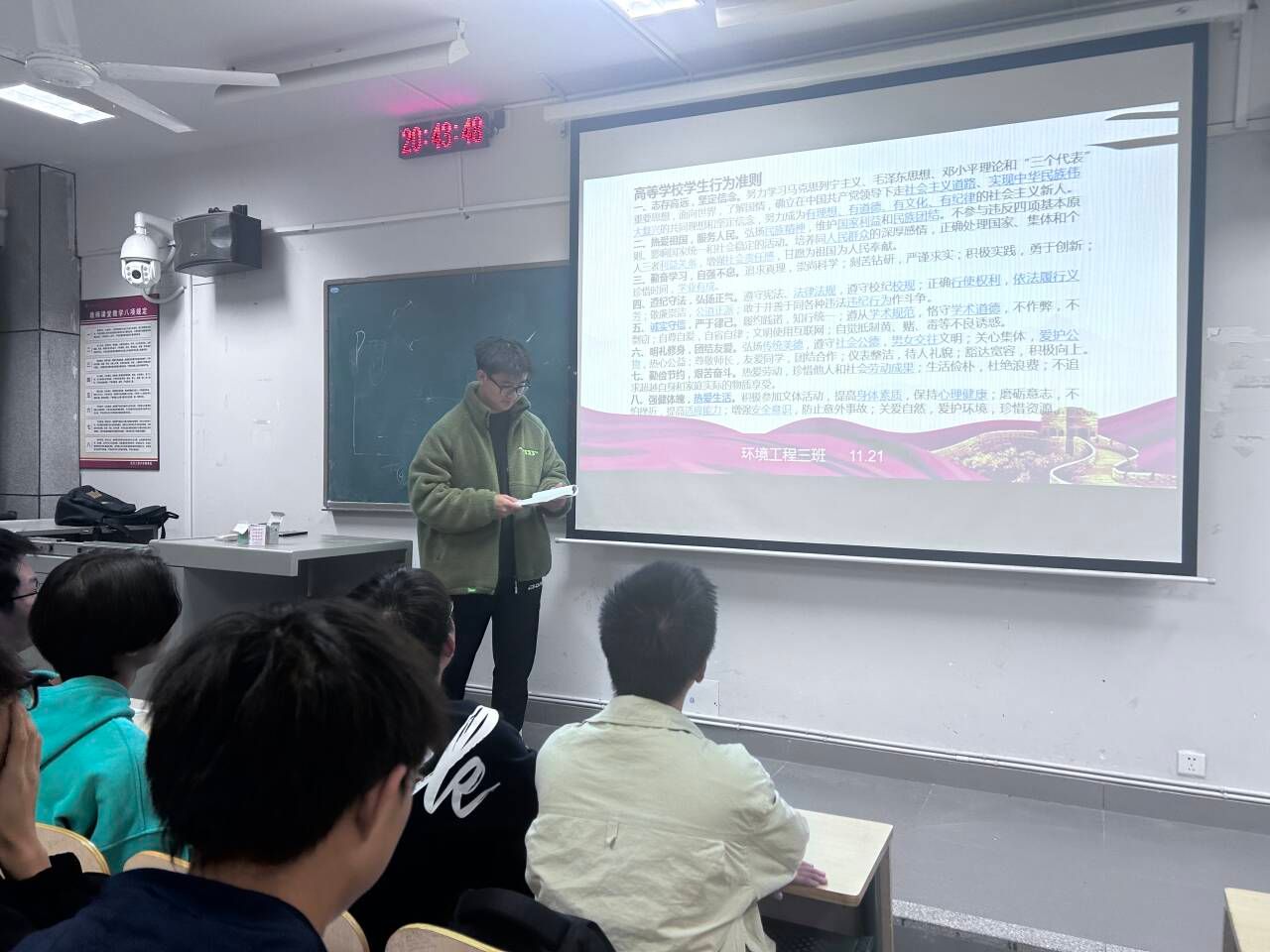 2023级本科各班召开了“学行为礼仪 做文明学生”主题班会,以《高等学校学生行为准则》为主要内容,由团支书带领学习。