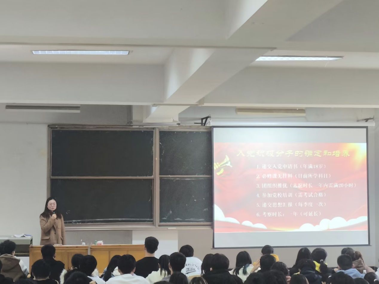 以“踔厉奋发,向党前行”为主题,开展新生入党启蒙教育。辅导员杨依婷担任主讲人,全体2023级本科新生参加。