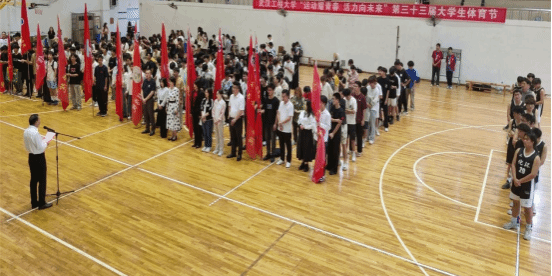承办的第三十三届大学生体育节开幕式在流芳校区大学生体育活动中心篮球馆举行。校党委副书记李志旭出席开幕式并致辞,学校相关职能部门负责人,各学院党委副书记、团委负责人,青年教师和学生代表共同参加本次活动。