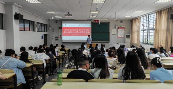 在流芳校区四号教学楼举办了“2024届毕业生专场招聘暨2025届毕业生职业经理人专场讲座”。讲座特邀中国石油化工股份有限公司九江分公司党委组织部(人力资源部)陈水主任主讲,会议由仝壮主持,学院2024部分毕业生和2025届全体毕业研究生参加。
