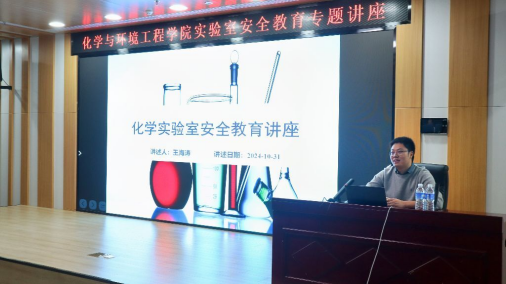 综合楼102报告厅开展了实验室安全教育专题讲座。本次活动由学院党委副书记许守飞主持,王海涛老师主讲,学院辅导员仝壮、张光宇以及2024级全体新生参加了此次讲座。