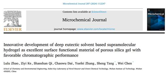 深共晶溶剂(DES)因其优异的性能在色谱分离中受到广泛关注。然而,传统DES在基质上改性后的稳定性不能满足色谱填料的要求,这就极大地限制了DES在色谱分离领域的应用。题为“Innovative development of deep eutectic solvent based supramolecular hydrogel as excellent surface functional material of porous silica gel with favorable chromatographic performance”的论文设计了一种基于N-羟甲基丙烯酰胺和双三氟甲烷磺酰亚胺锂的新型DES,并将其用于硅胶表面聚合改性,成功制备了具有良好稳定性、抗溶胀性和分离性能的新型超分子水凝胶固定相。本研究提出了一种改善DES在硅胶基质上稳定性的新方法,为探索DES水凝胶在液相色谱分离领域的应用潜力提供了重要参考。