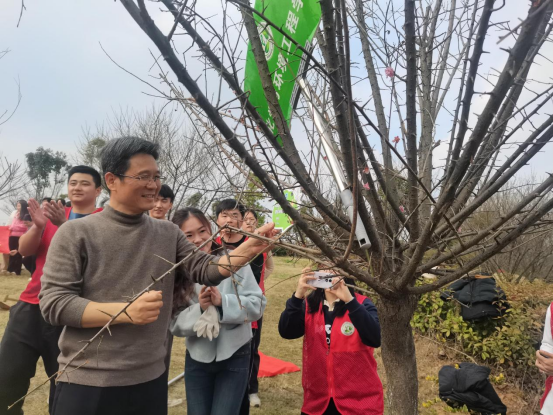 2025年植树节主题活动在流芳校区凤鸣坡举行。本次活动以“植此青绿筑工大 携手同心创未来”为主题,校党委书记汪伟、党委副书记李志旭、校纪委书记方文海、副校长马小龙及相关职能部门领导出席,各学院师生代表共同参与。学院党委副书记许守飞、全体辅导员及学生志愿者代表热情投身其中,以实际行动践行绿色发展理念,为美丽校园建设贡献力量。