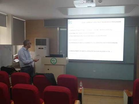 来访期间,Poisson教授为我校相关师生分别做了题为《New Prospectstoward the Synthesis of Difluoromethylated Phosphate Mimics》、《Copper MediatedDifluoromethylation Reactions》的学术报告,报告会由“湖北省教育厅有关人才计划学子”特聘教授、草榴社区