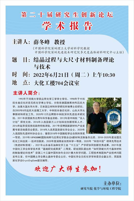 【研究生创新论坛】结晶过程与大尺寸材料制备理论与技术