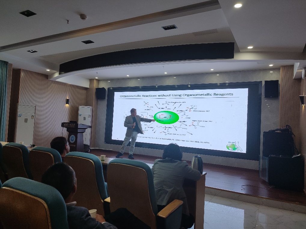 李教授谈及新化学反应助力未来可持续发展,在报告中,李教授讲述了地球目前存在的各类发展问题,并就化学研究在未来可持续发展中的可能应用做了介绍,主要阐述了化学研究在能源、资源、环境等方面的重要应用及三者之间的联系。李朝军教授指出:人类未来面临的最大挑战就是可持续发展。他倡导新型绿色化学反应的研究,简化反应步骤,减少有害物质的使用,助力地球未来的可持续发展。