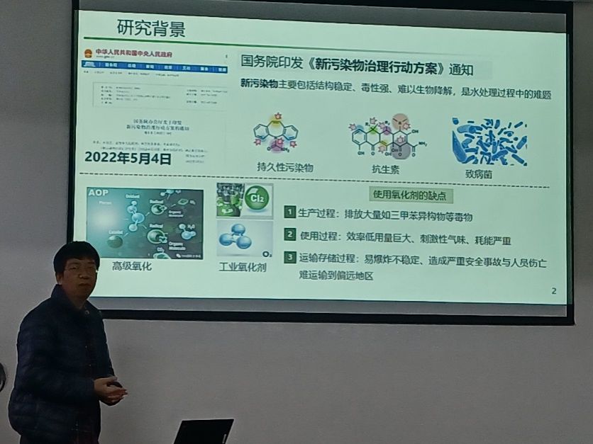 胡卓峰教授以《高效分子氧活化催化剂的设计与其高级氧化应用》为题,详细介绍了近年来课题组围绕利用分子氧来处理有机污水/废水开发的高级氧化技术。对如何克服分子氧活化难、活性位点不稳定和活性氧难调控等问题,如何设计高效低耗催化剂并进行实际应用提供了新途径。