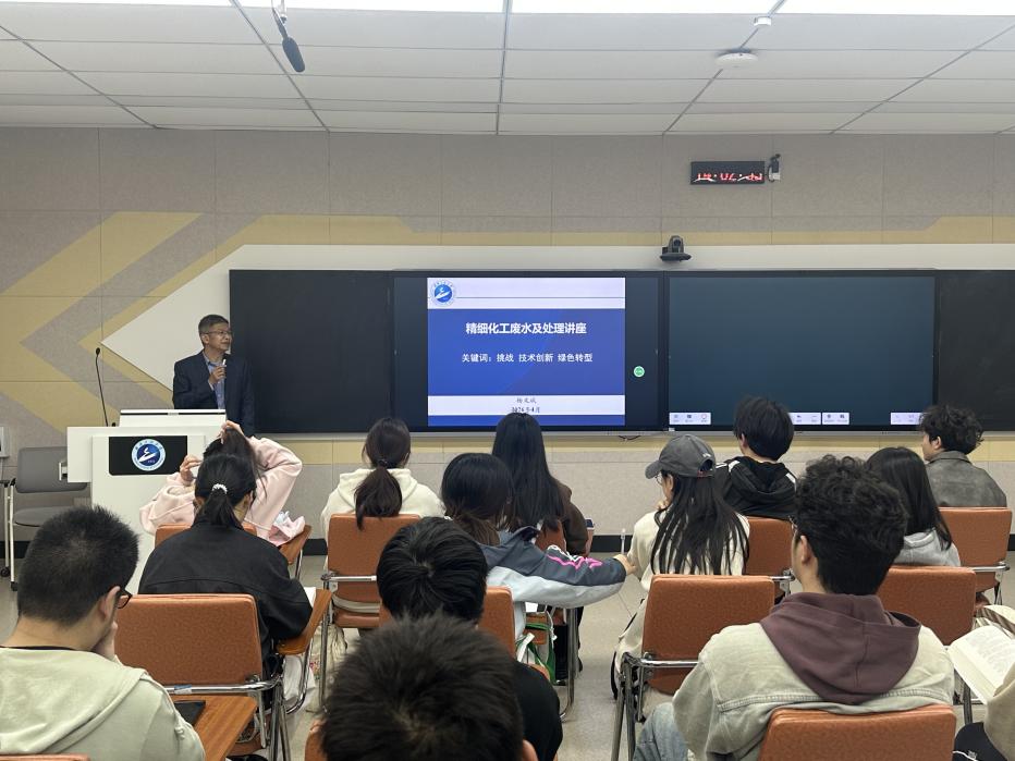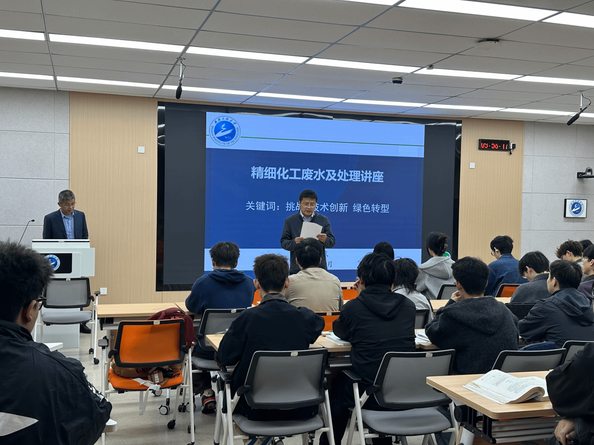 为深化产教融合、提升环境工程专业学生的工程实践能力,2026年4月22日,应《水污染控制工程》课程组邀请,精细化工废水处理领域资深专家杨文斌教授走进课堂,为环境工程专业大三学生带来了一场题为《精细化工废水处理讲座》的专题报告。讲座围绕行业现状、核心技术、工程案例及绿色转型等维度展开,内容丰富、案例翔实,现场气氛热烈。