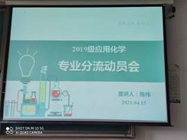 在流芳校区3102教室召开了19级应用化学专业分流动员大会,对学生进行了分流前的指导及动员,学院副院长王营茹、应用化学教研室主任奚江波、专业负责人陈嵘教授以及应用化学教研室的全体老师2019级应用化学专业全体同学参加了此次宣讲会。