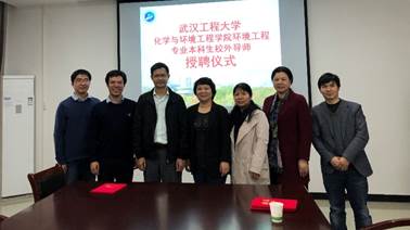 余军霞院长向与会人士致感谢词,并介绍了化环院环境工程专业人才培养概况,随后向新聘的校外导师颁发聘书,张良纯董事长接收学院邀请并讲话。张良纯董事长介绍了在市政污水、黑臭水体治理、市政供水等多个水处理领域工程实践经历及体会,承诺不辜负学院信任,认真履行环境工程专业本科生校外导师职责,对学生严格施教,促进其工程应用能力的培养与发展。张良纯董事长还邀约化环院环境工程专业毕业学子加盟九州水务,共同为我国的水环境保护贡献力量。之后,张良纯董事长同与会教师交流,就感兴趣的水环境工程问题积极沟通,共谋合作焦点,最后大家合影留念。